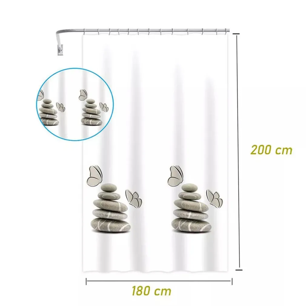 Tenda Doccia Vasca Bagno Impermeabile Decorata Sassi Shabby Chic 180x200cm