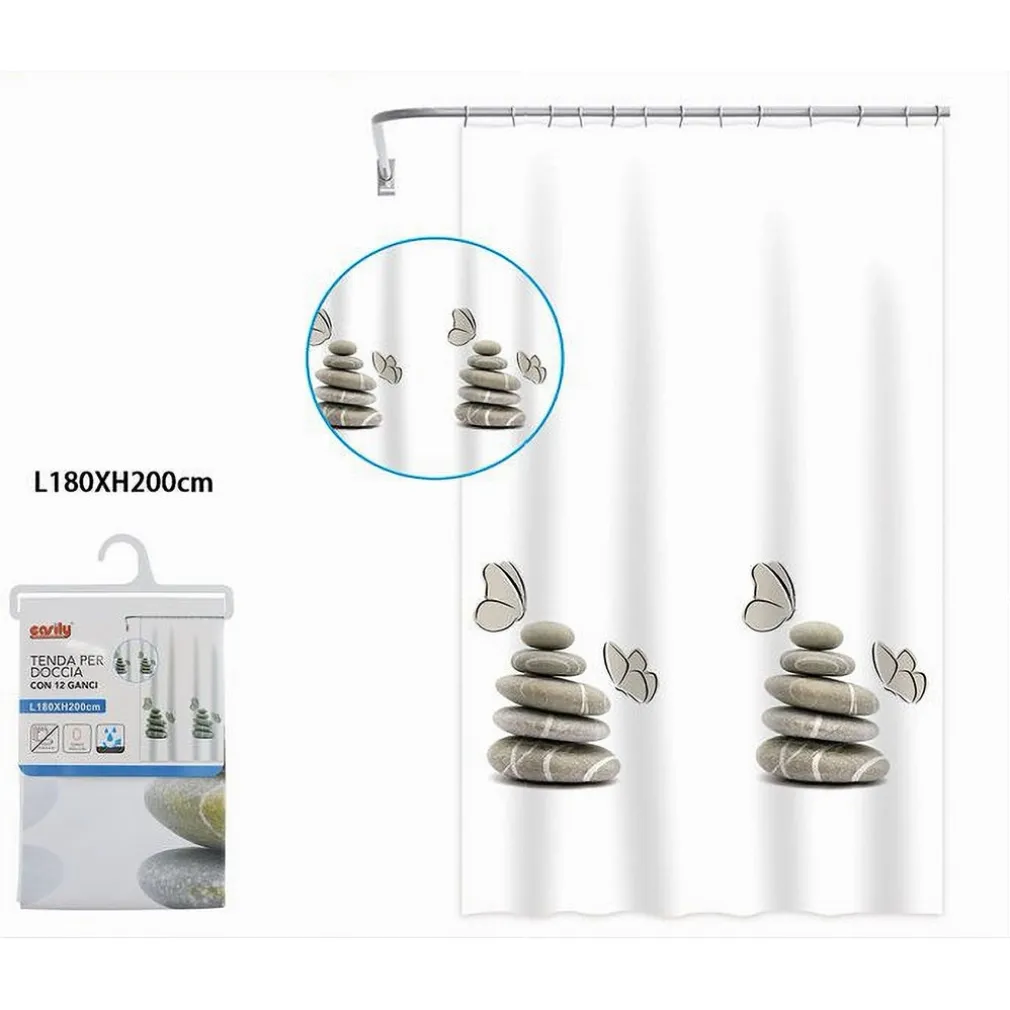 - 1 Tenda Doccia Vasca Bagno Impermeabile Decorata Sassi Shabby Chic 180x200cm