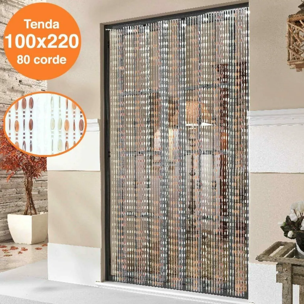 - 1 x Tenda Moschiera Porta Finestra 100x220cm 80 Corde Fili Perline Colorate