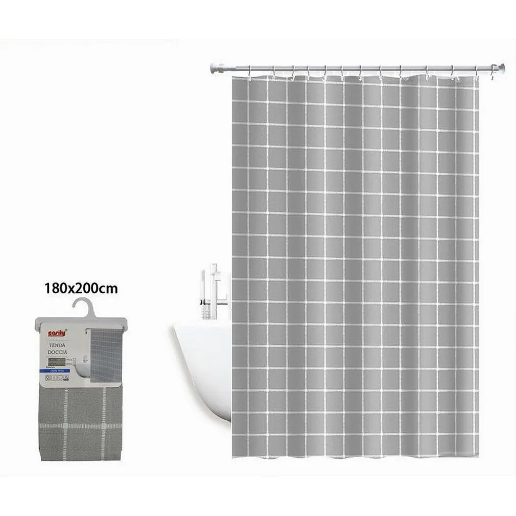 TENDA PER DOCCIA IMPERMEABILE IN PVC CON FANTASIA A QUADRI E 12 GANCI IN PLASTICA – 180X200CM
