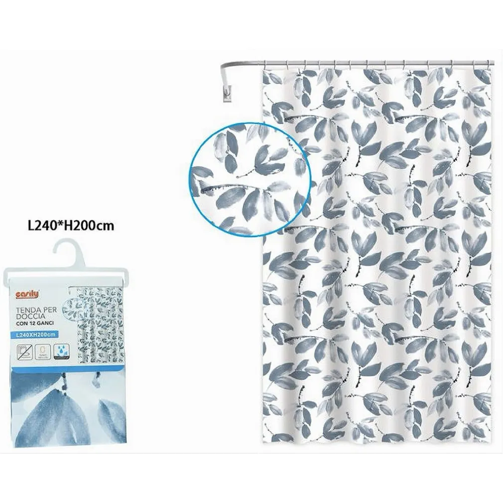 TENDA PER DOCCIA VASCA BAGNO CON 12 GANCI – MOTIVO RAMETTI FOGLIE 240×200 CM 87578