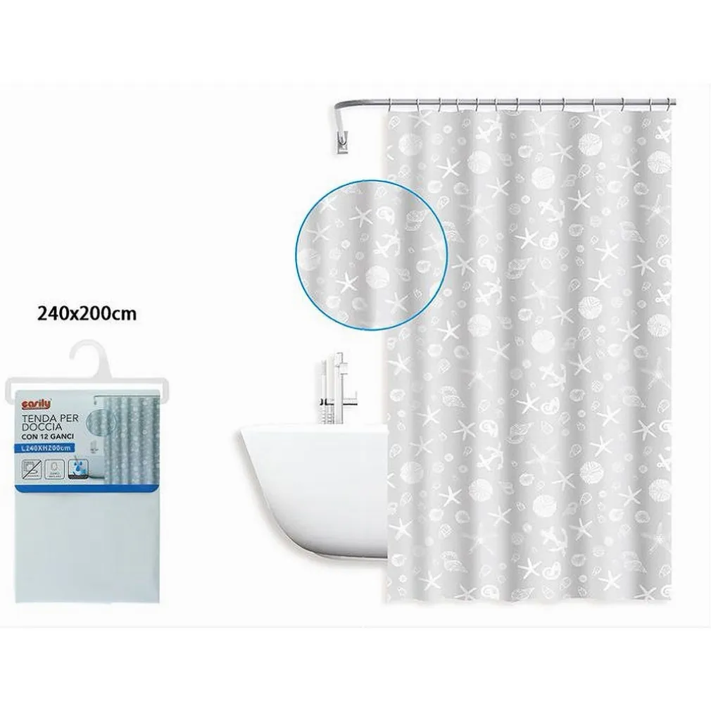 La tenda per doccia non è solo un elemento funzionale, ma può trasformare completamente l’atmosfera del tuo bagno. Il modello design stile marino con stelle marine, conchiglie, ancore, e altri dettagli naturali ti permette di immergerti in una vera e propria esperienza di relax. Grazie alle sue dimensioni generose di 240×200 cm, è perfetta sia per la doccia che per la vasca, garantendo una copertura ottimale. Con 12 anelli inclusi, l’installazione è rapida e semplice, per un tocco di classe senza sforzo.