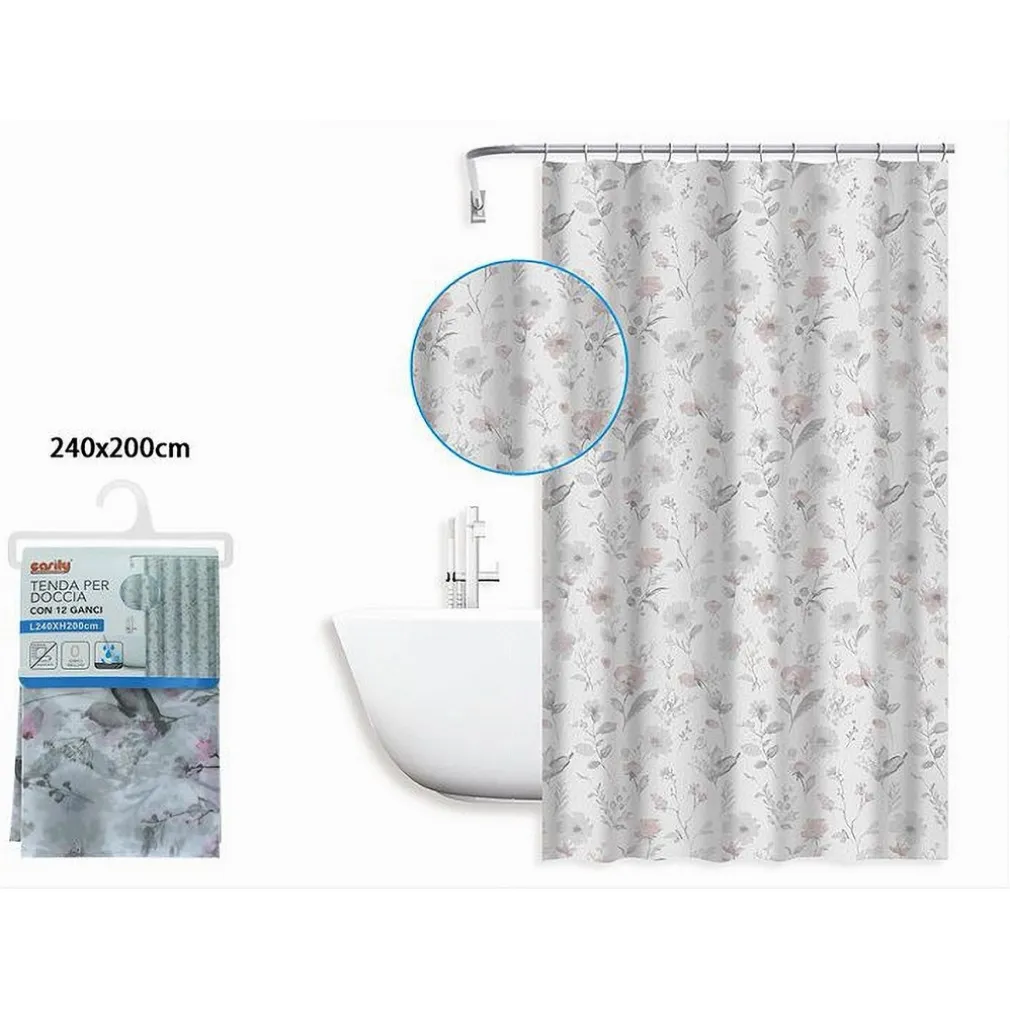 TENDA PER DOCCIA VASCA DA BAGNO DESIGN PRIMAVERILE 240X200CM CON 12 ANELLI 87596