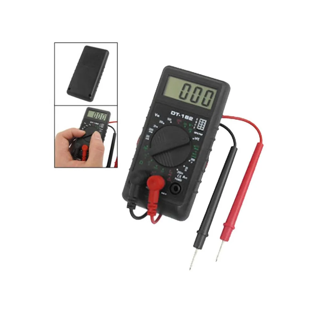 Mini multimetro digitale dt182 Transistor di prova, prova di continuità, la capacità di controllo della batteria di test, test diodo. Tester completo di cavi tester il suo funzionamento. Ideale per rilevare corrente e tensione di piccoli dispositivi elettronici e per controllare il corretto flusso di corrente. Ideale per il controllo di resistenze diodi. Efficientissimo e facile da utilizzare, perfetto per il fai da te e per professionisti che operano nel campo dell elettronica. Polifunzionale ed adattabile ad ogni circostanza.