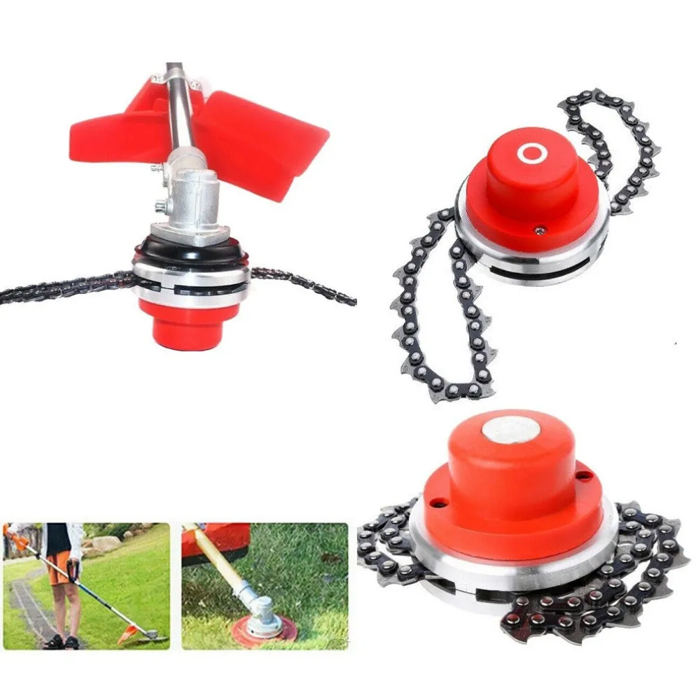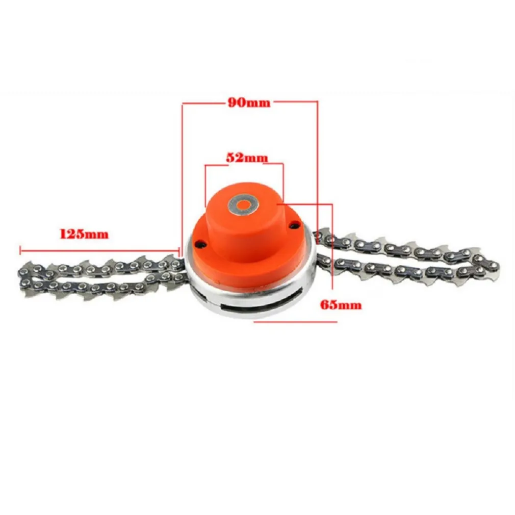 La testina è fatto di materiale metallico di alta qualità, robusto e durevole. La catena è dura, più affilata e più resistente, 65Mn catena è di elevata durezza. Taglierina per motosega, utile per il tagliaerba da giardino. Un utile accessorio di ricambio per il rifinitore. Realizzato in materiale metallico, resistente e pratico. Facile da installare e comodo da usare. Un accessorio pratico sostitutivo per il potatore. Perfetto per uso giardino o agricolo.