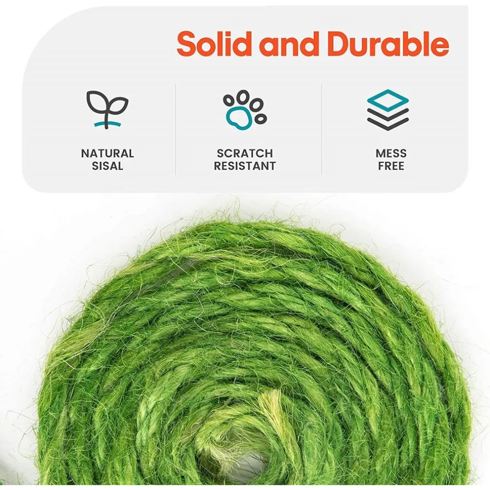 Palo in Sisal naturale per artigli sani. Avvolto da una corda di sisal naturale, il tiragraffi per gatti aiuta a mantenere le unghie del tuo micio pulite, sane e forti. La parte superiore e la base sono coperte con morbido materiale di velluto a coste, su cui i gatti amano strofinarsi.
