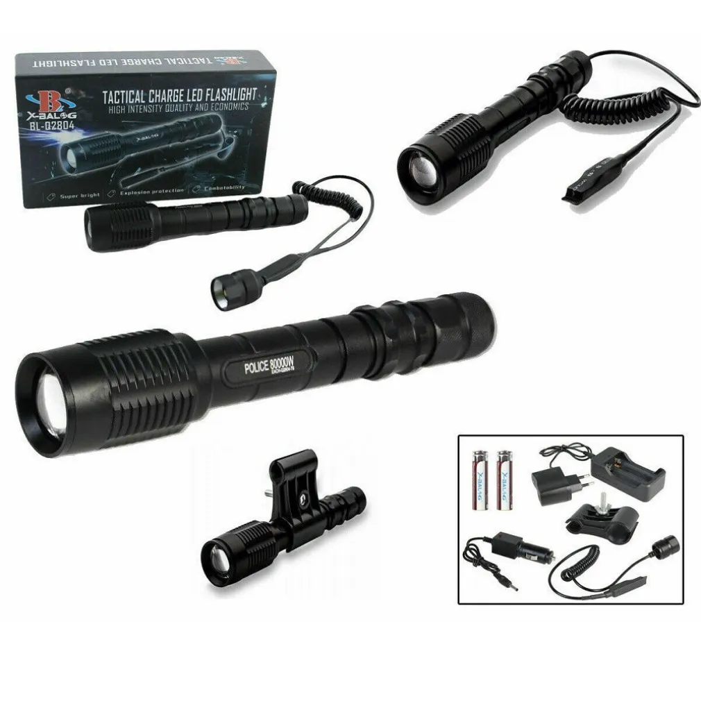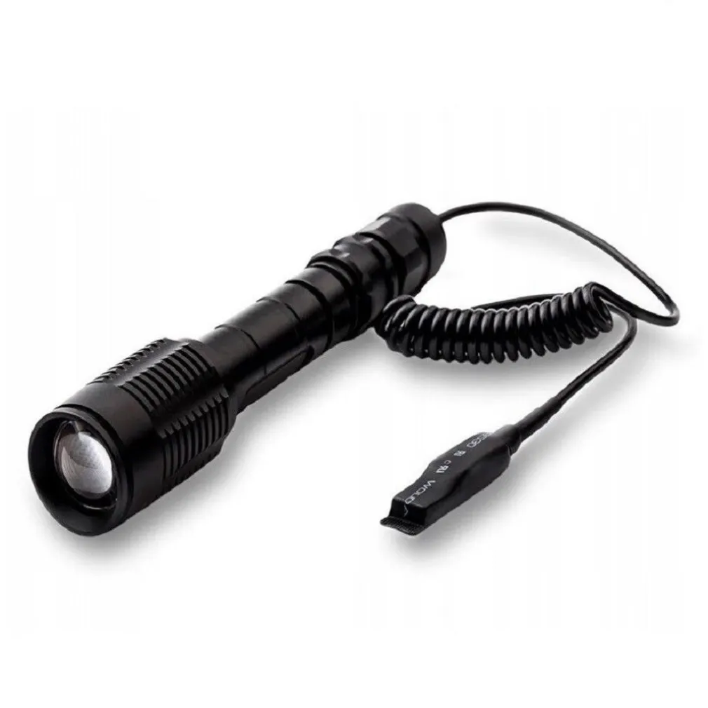 Torcia led tattica a luce fissa ricaricabile e ad alta durabilità, realizzata in alluminio leggero con manico antiscivolo perfetta per l’utilizzo in condizioni di umidità o di pioggia. La torcia è dotata di effetto zoom che permette di allargare o restringere il fascio di luce per avere una luminosità più ampia o più stretta estraendo semplicemente la ghiera. È perfetta per fucile e caccia, viene fornita con un particolare dispositivo per poterla accendere da remoto manualmente e attacco universale per fucile, fucile da caccia e carabina. Emana un fascio di luce luminossissimo testato fino ad una distanza di 150 metri e può essere utilizzata durante battute di caccia, softair, campeggio, polizia, vigilanza, ecc. Dotata pulsante di accensione situato a fondo torcia per l’uso tradizionale e in sostituzione attacco remoto per il montaggio ad arma.