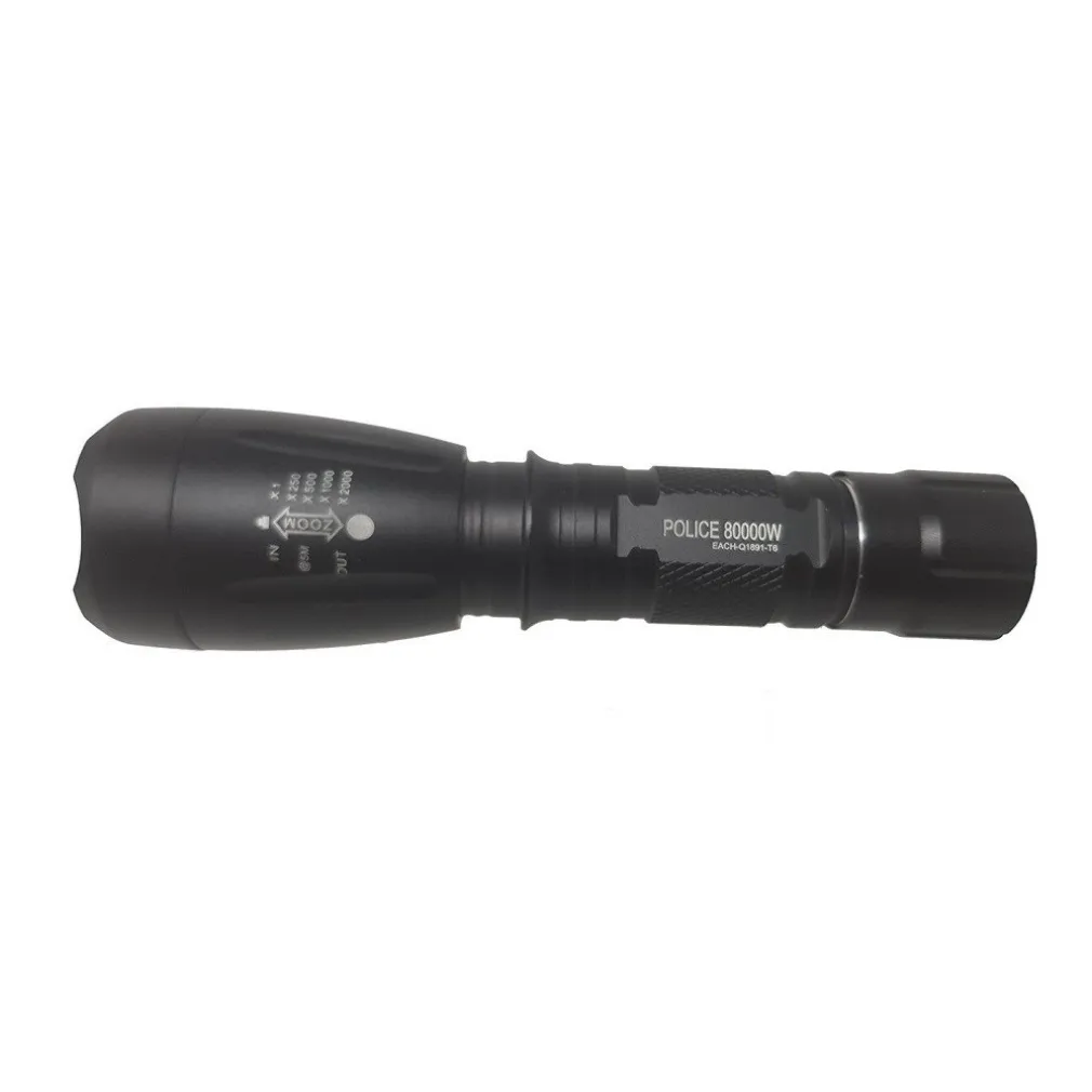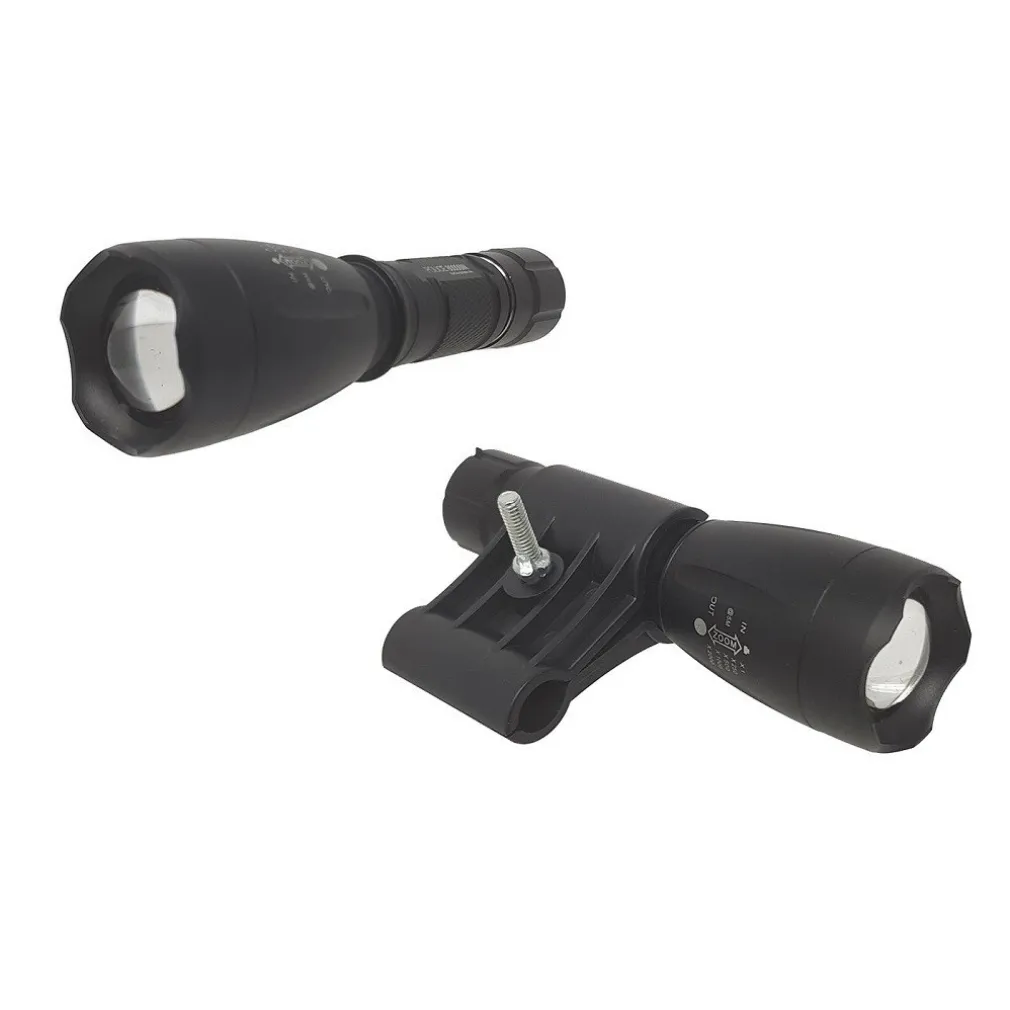 Torcia con luce led di durata fino a 100000 ore con manico antiscivolo perfetta per l’utilizzo in condizioni di umidità o di pioggia. Dotata di tasto di accensione e spegnimento posteriore (on/off) di colore verde. Il consumo è equivalente a un decimo di un normale incandescente. La torcia è dotata di effetto zoom che permette di allargare o restringere il fascio di luce per avere una luminosità più ampia o più stretta estraendo semplicemente la ghiera. Super luminosa ed è tascabile grazie alle dimensioni contenute, adatta all’utilizzo professionale dei corpi militari, agli addetti alla sicurezza o per uso personale. È perfetta per fucile e caccia, viene fornita con un particolare dispositivo per poterla accendere da remoto manualmente e attacco universale per fucile, fucile da caccia e carabina. Il Alta durabilità, lavorata dalla lega di magnesio, anti corrosione e impermeabile. Funziona grazie alla batteria ricaricabile fornita in dotazione oppure può essere alimentata con 3 batterie AAA non incluse.