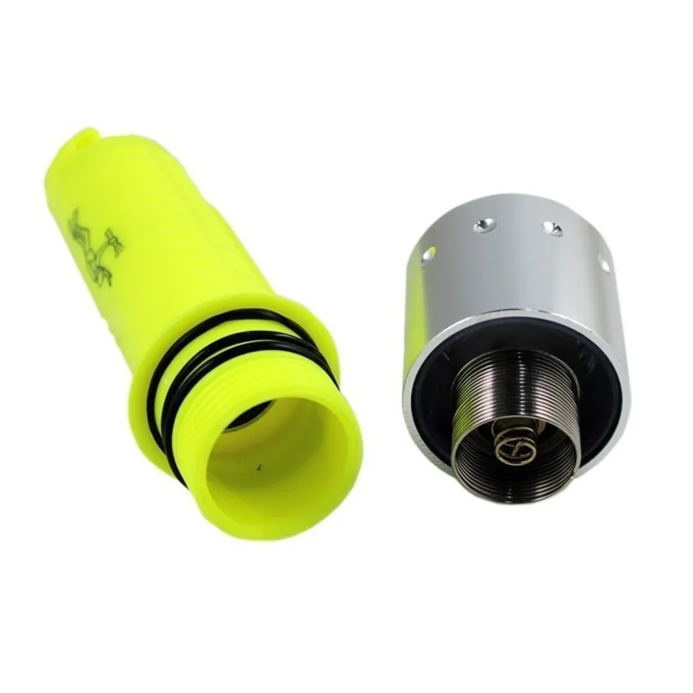 ferma la torcia su polso. Dotata di tecnologia led da 260 lumen. Torcia led subacquea realizzata in materiale di alluminio e ideale per la pesca subaquea o per immersioni. Dotata di fascia eleastica a strappo per polso per poterla fissare la polso durante le immersioni. Presenta anche un laccetto da trasporto per metterla al collo prima di immergervi. 3 tipi di illuminazioni, luce bassa, luce intensa e sos. Potenza lumen variabile a seconda del tipo delle illuminazioni, a luce bassa 200Lumen a luce alta 800 Lumen. Resistente agli Urti. Si alimenta con 1 X 18650 3.7V Battery (Non inclusa nella confezione) o anche con 3 pile ministilo(non incluse nella confezione)