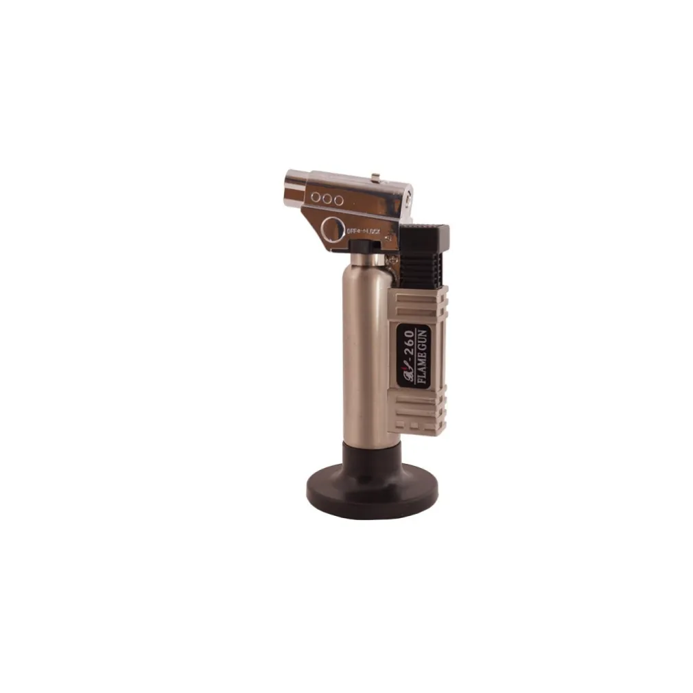L’alimentazione è a gas butano con conseguente fiamma blu, RICARICABILE.