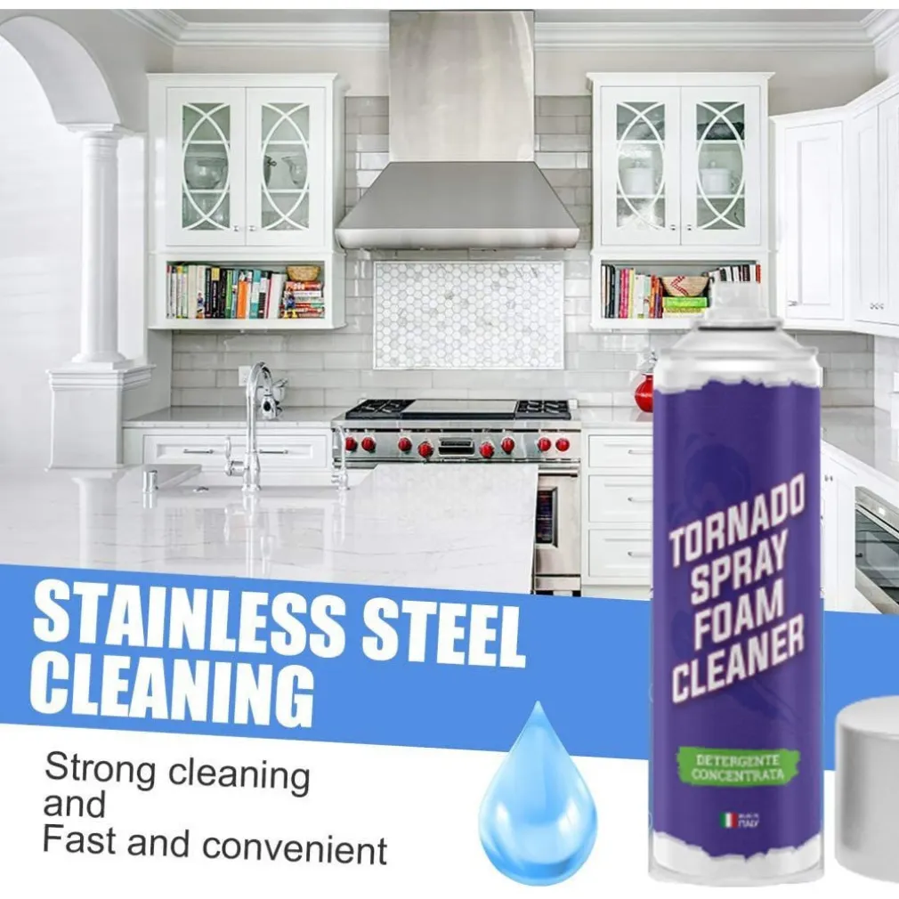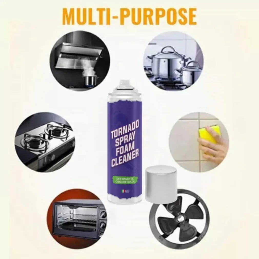 Tornado Spray Schiuma Magica è un innovativo prodotto realizzato per la pulizia di praticamente TUTTO. Si tratta di una schiuma bianca biodegradabile adatta a qualsiasi superficie che non lascia nessuna traccia. Pulisce la cucina,i vetri, il bagno, i tessuti oppure addirittura puoi lavarci la tua auto (sia interni che esterni) e tanto altro ancora! Elimina efficacemente grasso, sporco incrostato, polvere, impronte e macchie indesiderate da tutte le superfici, lasciando una finitura opaca e non unta che previene sbiadimento, scolorimento e screpolature.