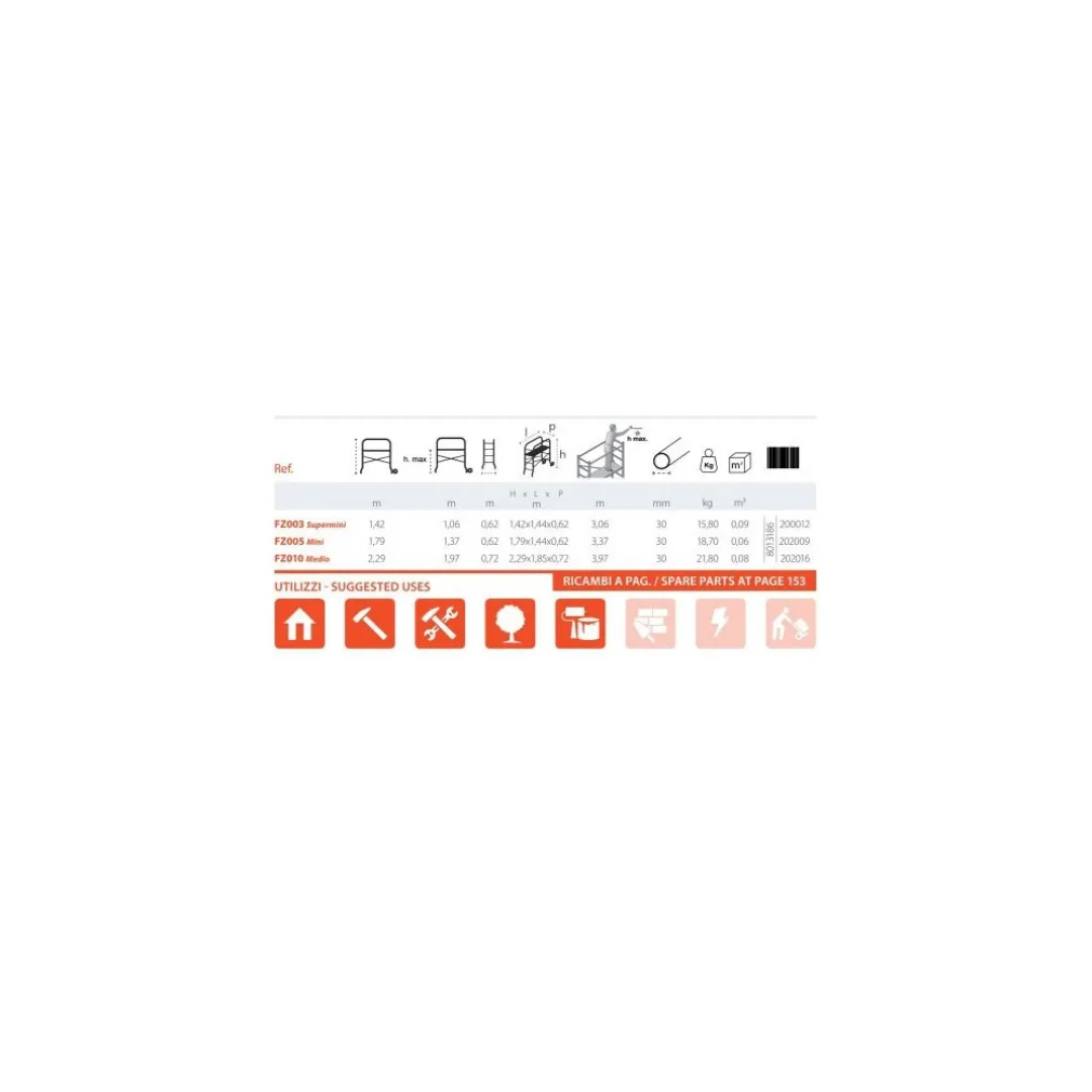 - Il trabattello è conforme al Decreto Legislativo 81/08, garantendo sicurezza e affidabilità durante l’uso.