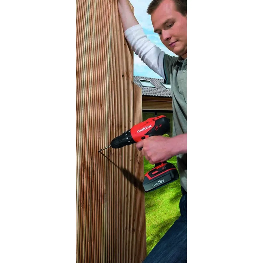 MAKTEK Maktec-MT081E Trapano avvitatore a percussione a batteria Ioni di Litio con frizione MAKTEC by MAKITA MT081E a due velocità con frizione regolabile in 16 posizioni comprende caricabatteria e due batterie 18 Volt