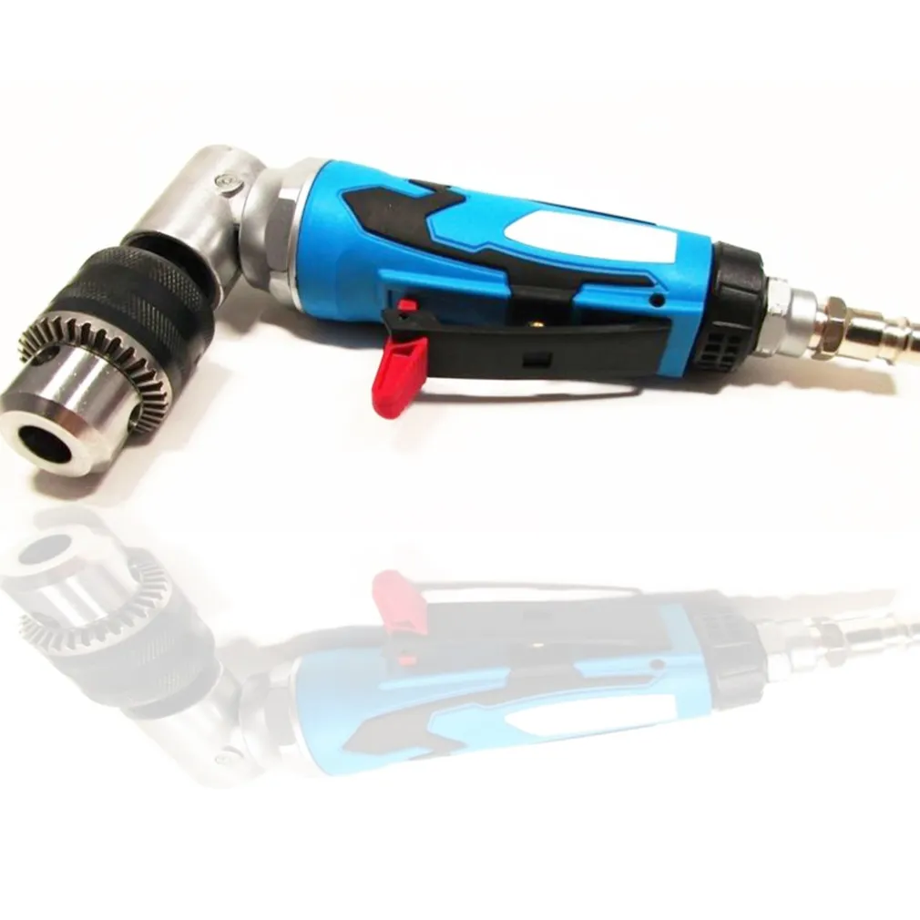Trapano con angolo di 90° mandrino a cremagliera da 3/8 per punte da 1 a 10mm. Dotato di regolazione della velocità e pratica leva di azionamento con fermo di sicurezza. Impugnatura con rivestimento soft/grip per la presa antiscivolo
