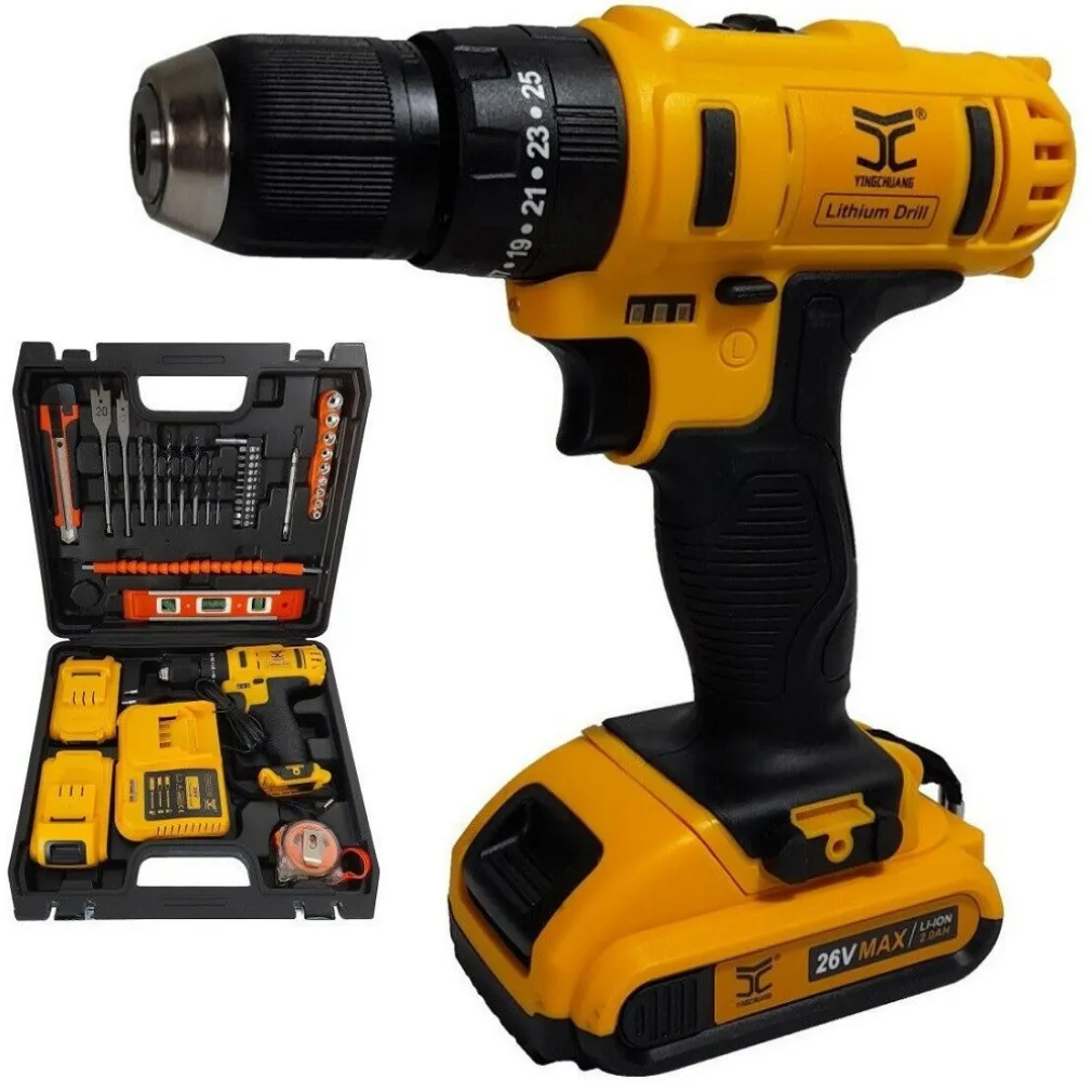 Trapano avvitatore a percussione doppia batteria litio 26V valigia 35 accessori