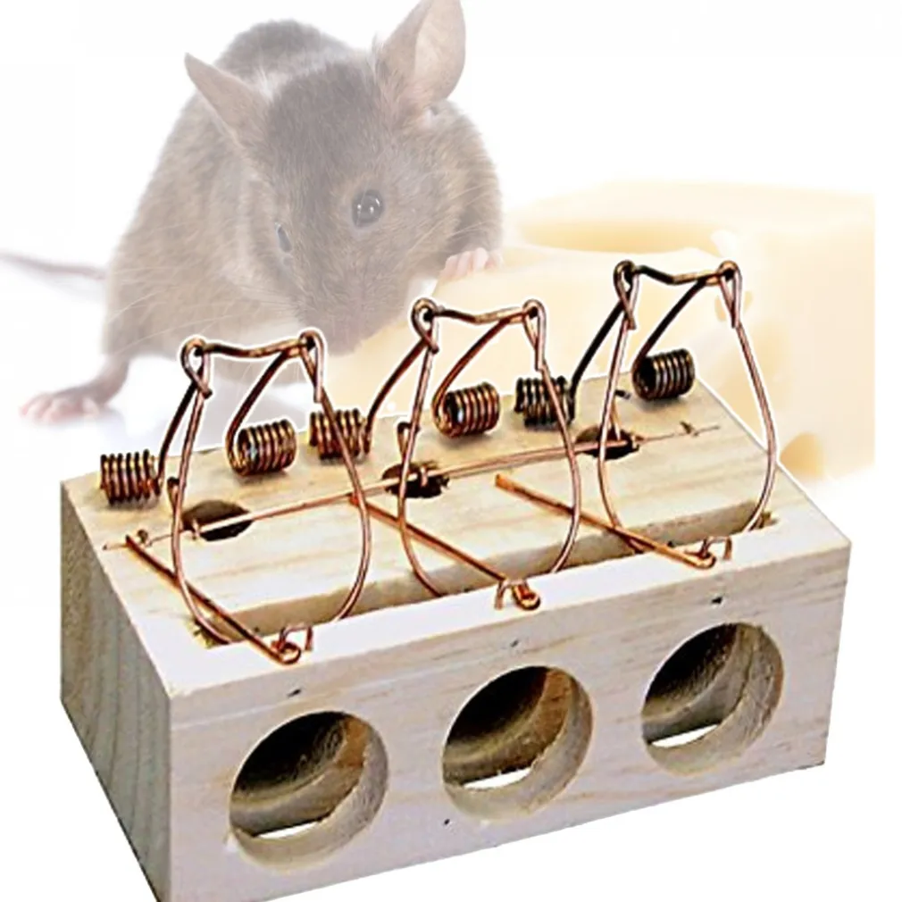 TRAPPOLA PER TOPI TRADIZIONALE CLASSICA IN LEGNO A 3 FORI RODITORI PEST CONTROL