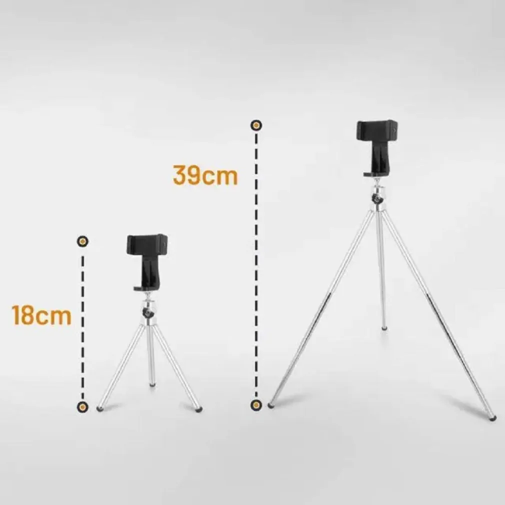 Treppiede da scrivania per smartphone per stabilizzare i tuoi scatti in foto e video con il tuo dispositivo. Mini treppiede allungabile che può raggiungere un’altezza da 18 a 39 cm. Treppiede con supporto girevole a 360° e punte antiscivolo.