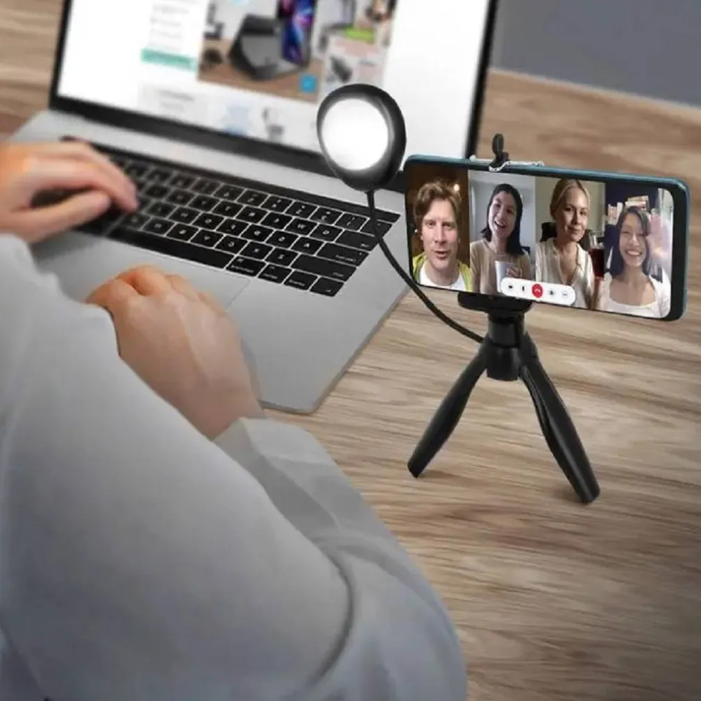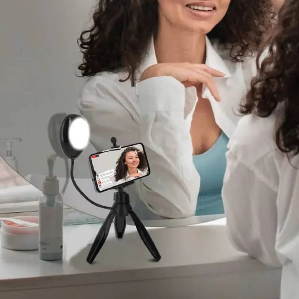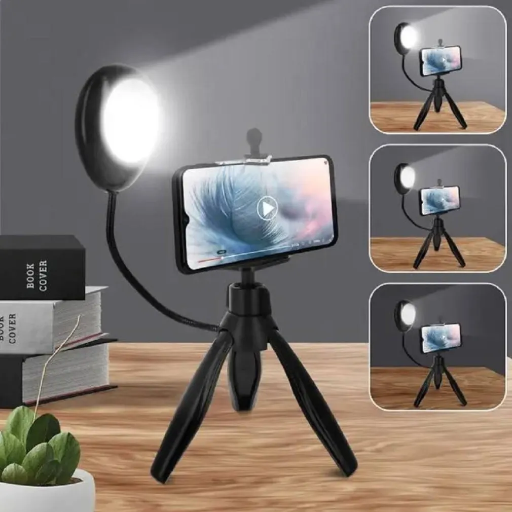 Treppiede desktop per foto e video stabili con il tuo smartphone. Treppiede con lampada a LED per migliorare le tue produzioni ed evitare le ombre. La lampada a LED incorpora 3 livelli di luminosità per personalizzare le tue creazioni.