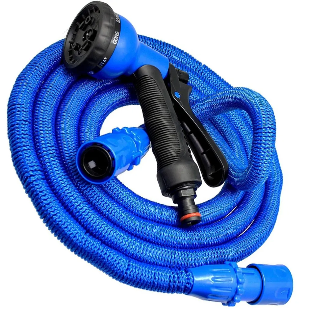 Tubo espandile (si espande fino a tre volte la sua lunghezza) senza perdere la potenza del getto d’acqua. Quando si apre l’acqua il tubo si espande automaticamente e quando si richiude torna di nuovo alle origini.