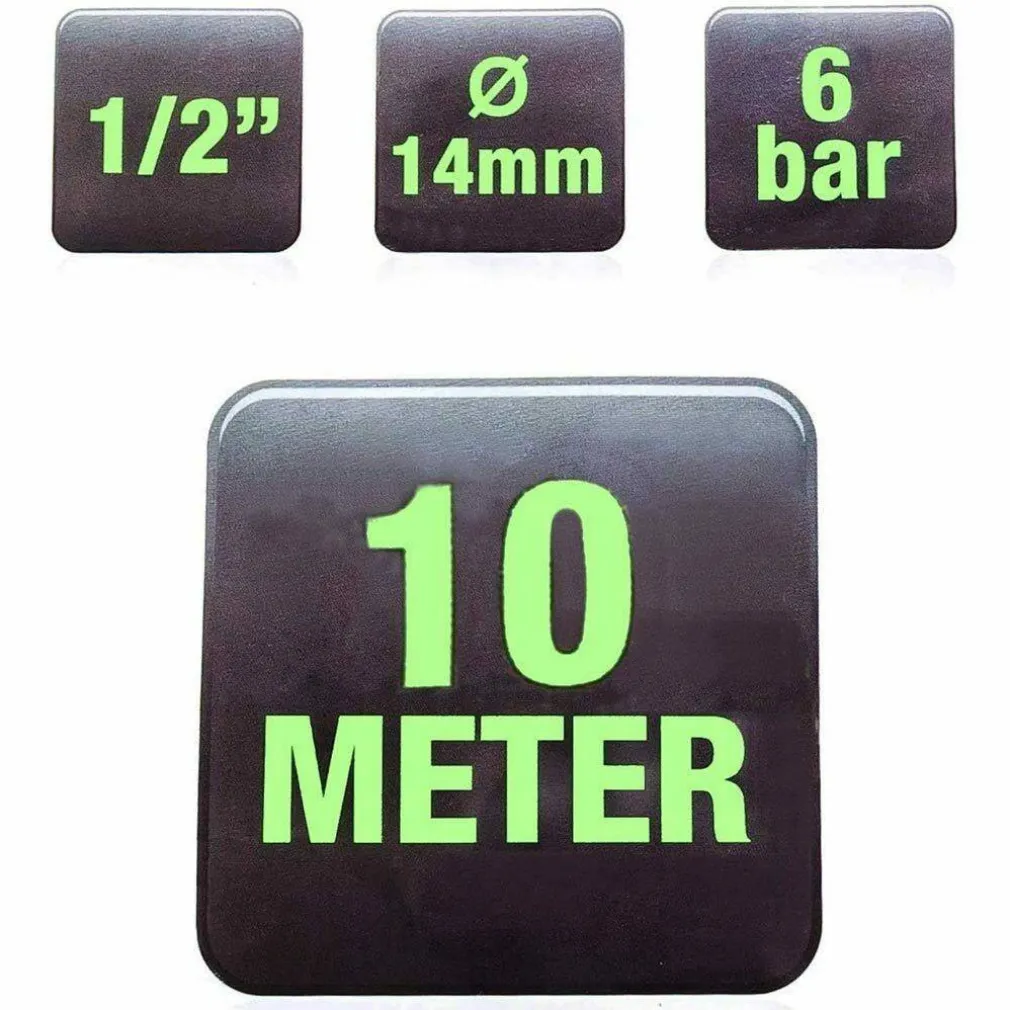 Realizzato interamente in PVC a 3 strati super resistente capace di sopportare una pressione di ben 6 bar, perfetto per l’utilizzo quotidiano nei tuoi spazi esterni. Spessore 1/2″ con un diametro di 14mm e una lunghezza di ben 10mt che vi lascerà massima libertà di movimento durante l’utilizzo. Il tubo da giardino è perfetto per la pulizia del terrazzo, per l’irrigazione di piante da giardino ecc..
