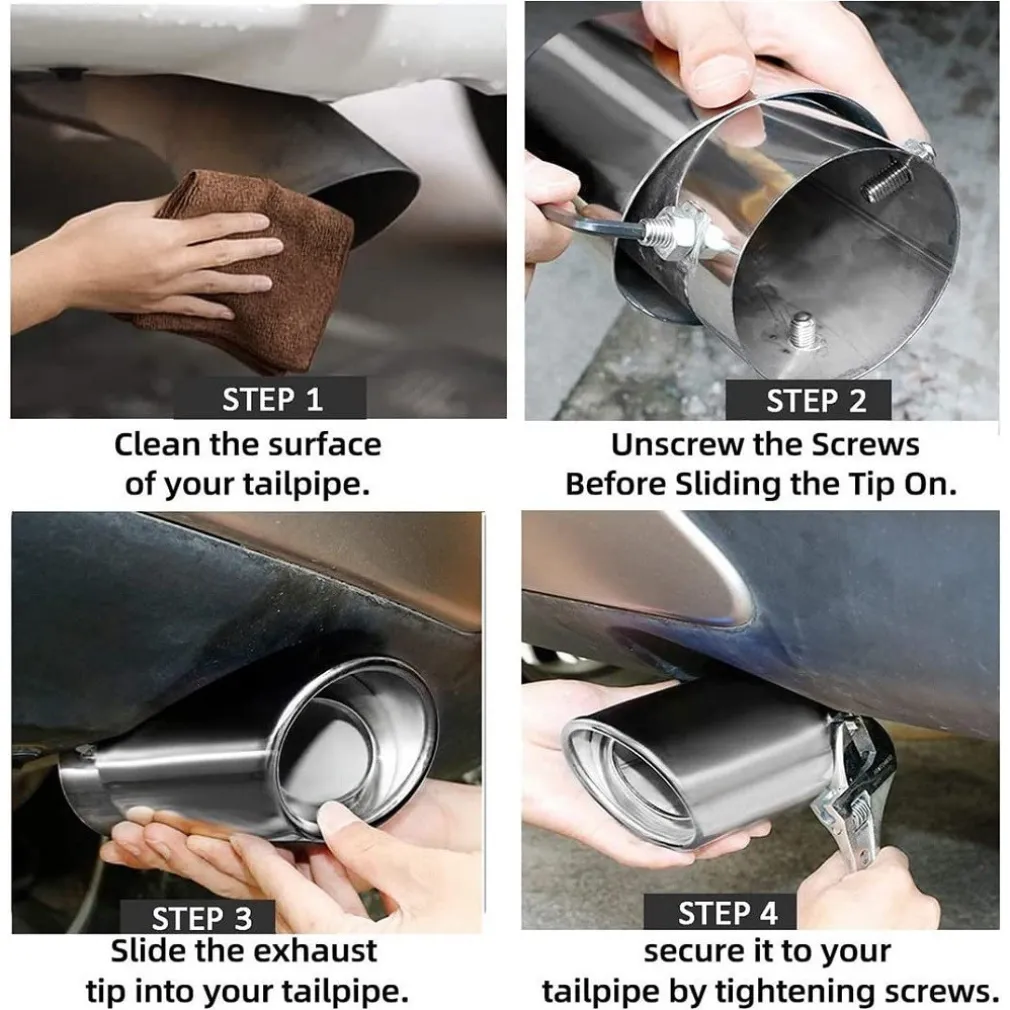 Il design super facile da installare consente una rapida personalizzazione del tuo veicolo. Basta avvitare la punta del tubo, senza la necessità di sostituire parti o effettuare saldature complesse. Il taglio angolato del bordo scorrevole e il design più spesso della parete interna non solo rendono la tua auto più robusta per un suono più potente ma proteggono anche il tubo di scarico originale, aggiungendo un tocco di glamour. Sii sicuro che i tuoi amici saranno attratti dalla tua auto unica.