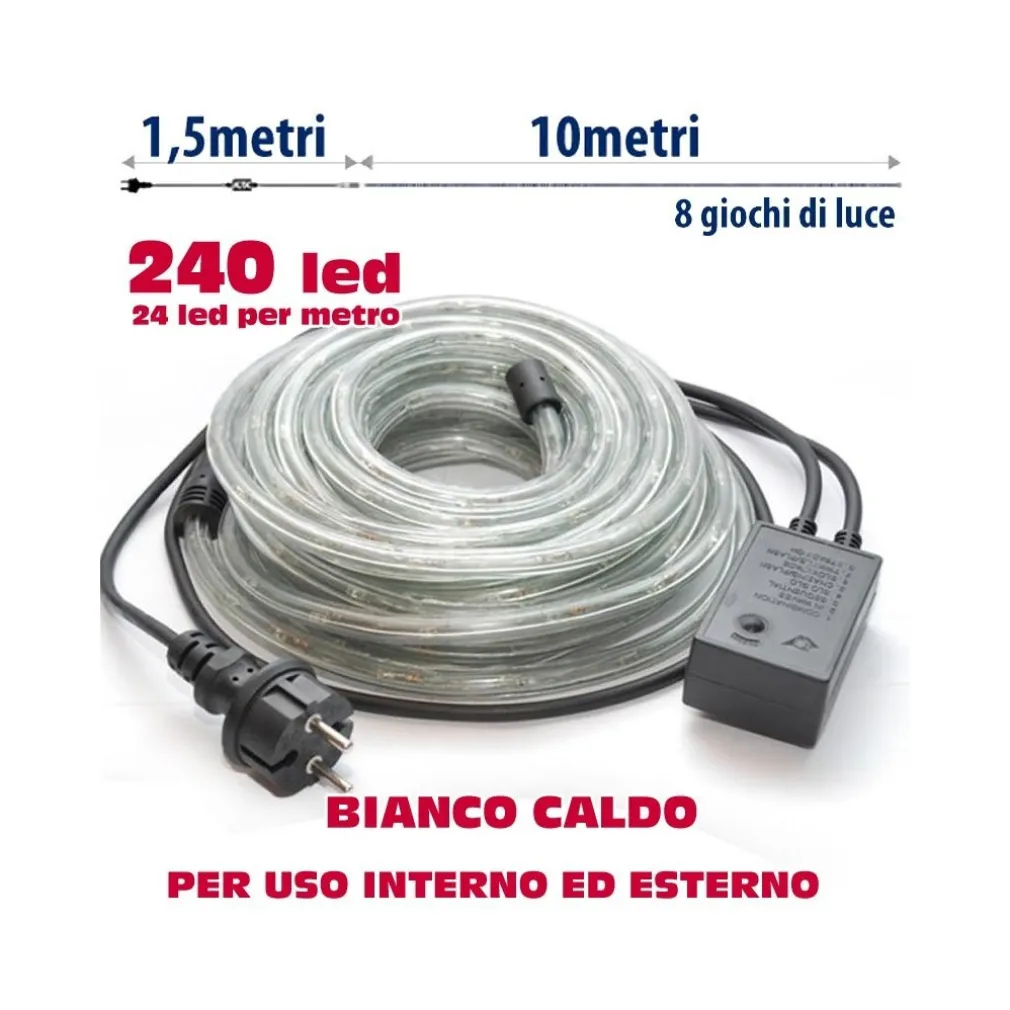 - 1 x Tubo Luminoso LED Bianco Caldo 10 metri
