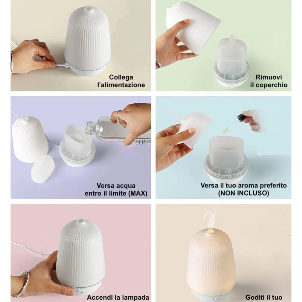 Renditi il protagonista del tuo benessere con l’Umidificatore USB Lampada Bianco Calda A750 100ml Aromaterapia. Acquista ora e trasforma il tuo spazio in un’oasi di relax e comfort!