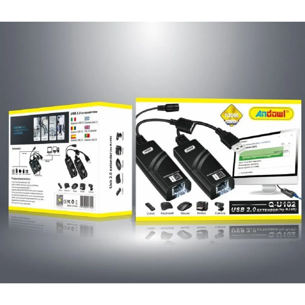 USB 2.0 EXTENDER RJ45 2 POSIZIONI ESTENSIONE FINO A 100M VELOCITÀ 480MBPS Q-U102