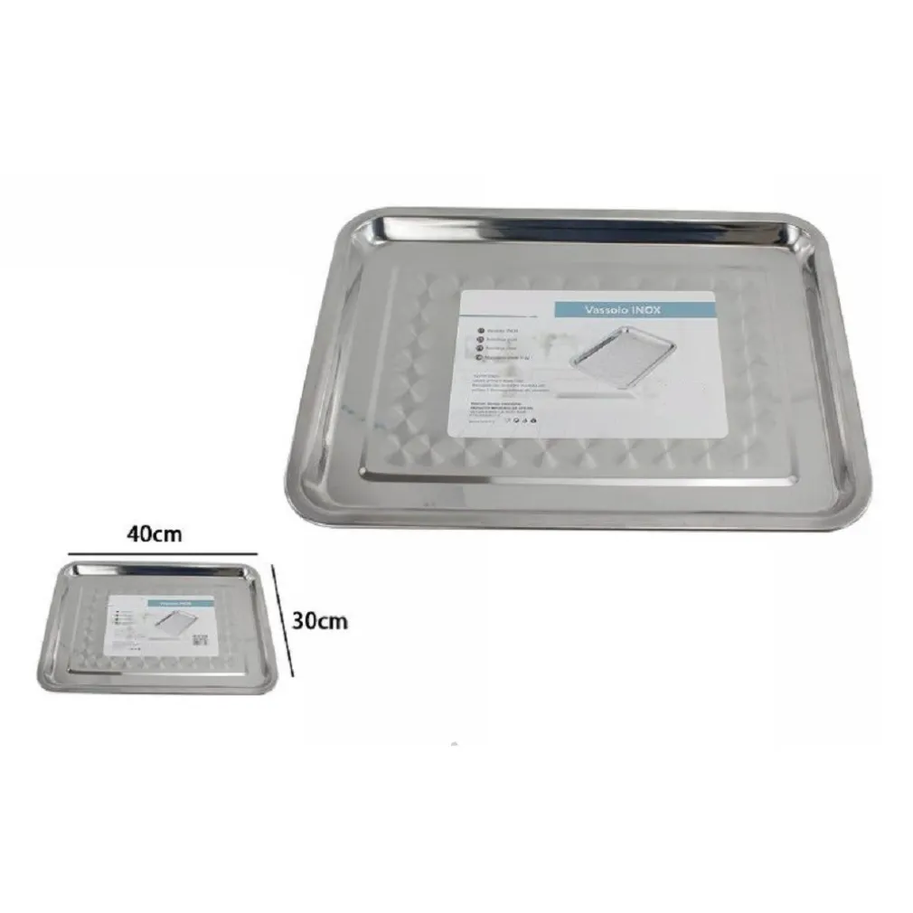 - 1 x Vassoio Rettangolare in Acciaio Inox 40x30cm