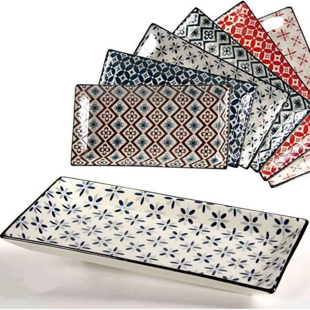 Vassoio Rettangolare in Ceramica Decorati Assortiti 24x12x1,8 cm per la Cucina