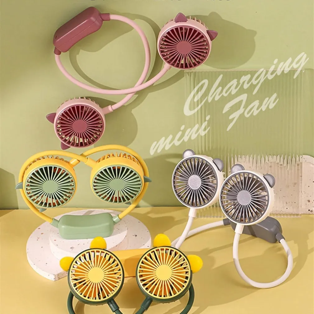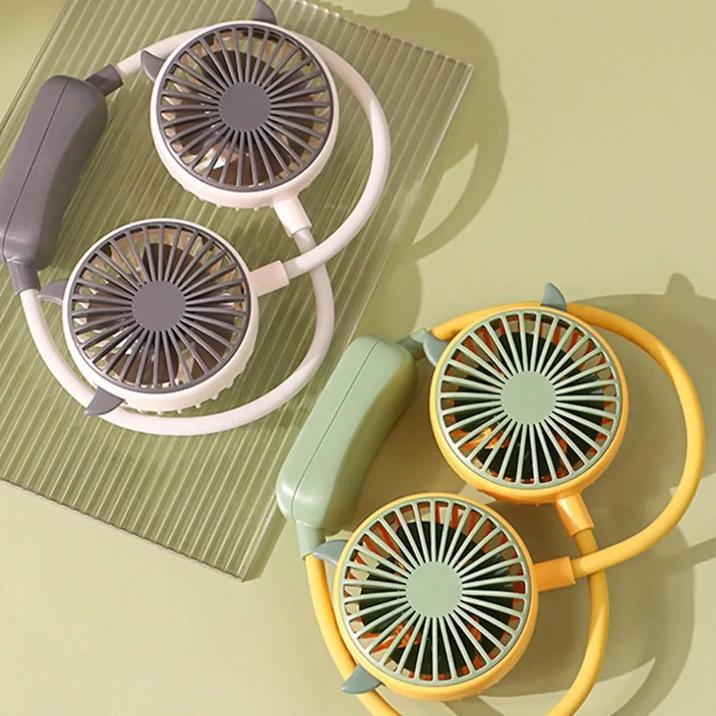 Questo ventilatore portatile da appendere al collo è dotato di due ventole regolabili a 360° e due velocità selezionabili, rendendolo perfetto per chi desidera freschezza personalizzata senza l’ingombro delle mani occupate.