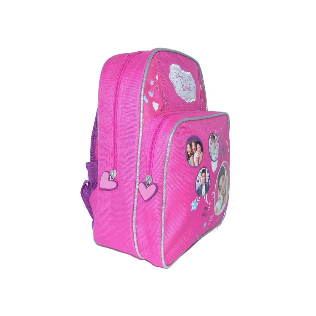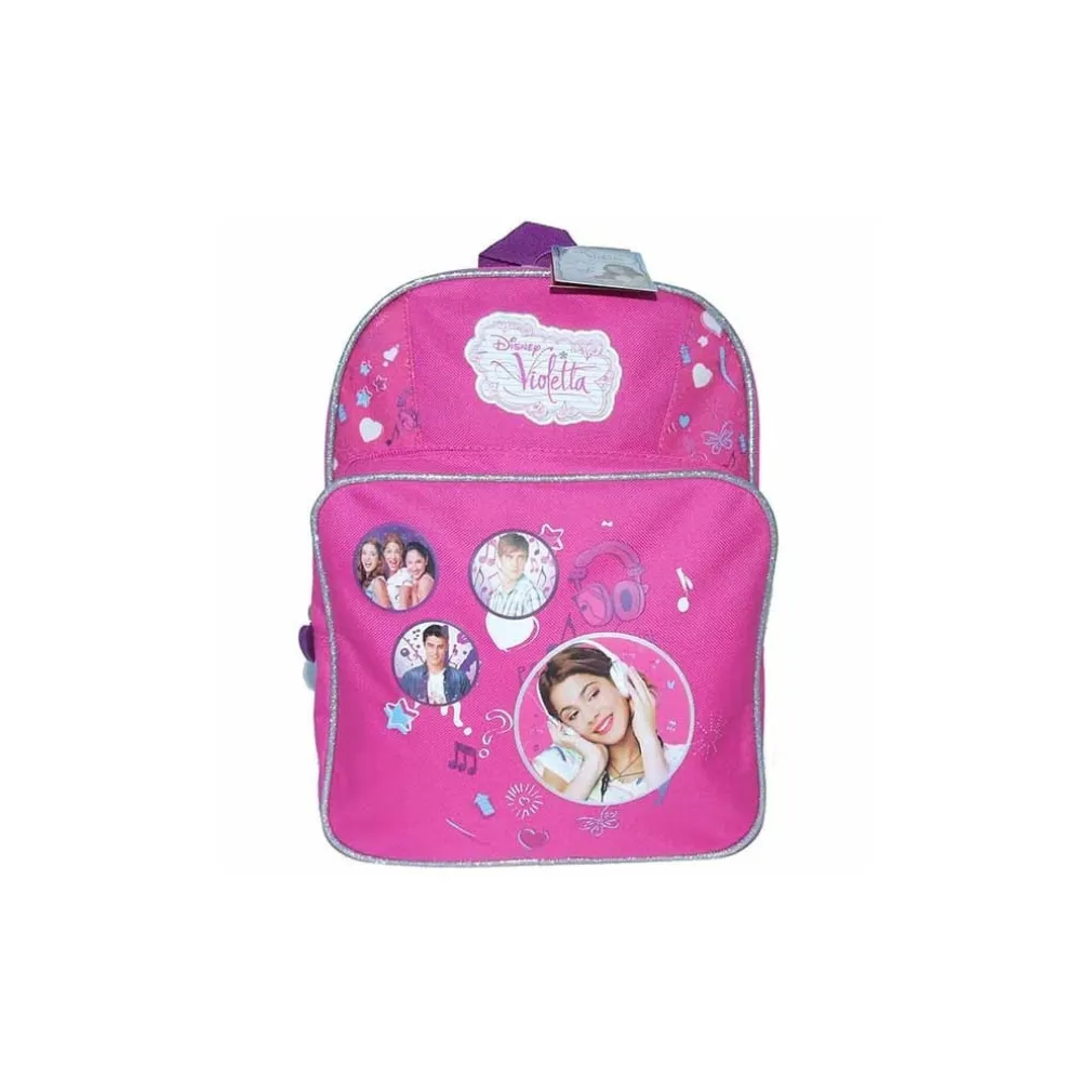 Zainetto scuola Disney Violetta, la bellissima protagonista della serie TV Disney e icona del mondo moda per bambine. Interamente rivestito con fodera personalizzata, questo zainetto è realizzato in microfibra, ed è dotato di spallacci ergonomici ed imbottiti che lo rendono più comodo da portar in spalla. Presenta infine un manico superiore tramite il quale si può appendere e una tasca Frontale per riporre un ombrellino o la merenda.